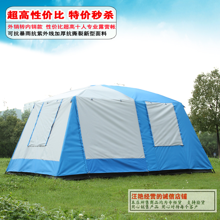 2 спальни 1 гостиная большая УФ 10-12 человека, роскошь семейный праздник Базы Анти дождь туризм путешествия альпинизм на открытом воздухе кемпинга палатка Цена: 19 124,58 руб. / шт. Цена со скидкой: 8 605,86 руб. / шт. Характеристики товара Структура:2 спальни и гостиная Сезон:Палатка три с… Читать дальшеезона Ёмкость:8+ Зон:(230+230)*305*210cm Тип:Палатка на более 5 человек Материал шеста:Стеклопластик Ткань:190T Описание товара внутренний слой: водонепроницаемый ткань + сетка внизу: супер утолщаются водонепроницаемый PE PU 3000 мм полюса: стекловолокно полюс + стальная рама 19/16/12.5/9.5 мм вес: 20kgs пакет: 75*28*25 см